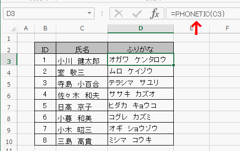 カタカナ ひらがな 変換 エクセル 関数